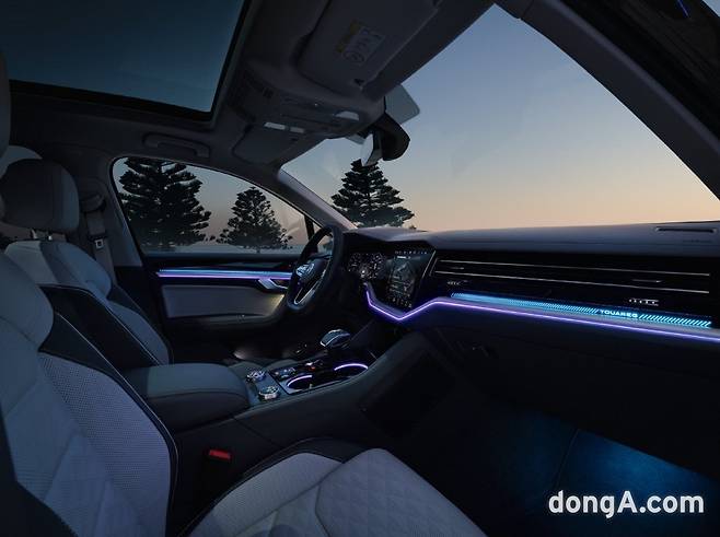 신형 투아렉의 가장 큰 기술적 혁신은 ‘IQ.라이트 HD 매트릭스 헤드라이트’다. 고해상도 라이팅 기술을 도입한 이 시스템은 3만8000개 이상의 LED로 구성돼 어두운 환경에서도 준수한 시야를 제공하며 살아 움직이는 눈처럼 반응한다고 한다.