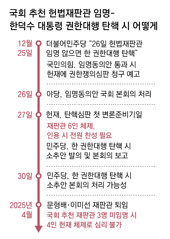 - 헌재도 된다는 재판관 임명, 與 “안돼”… 6인체제 붕괴 노림수 논란