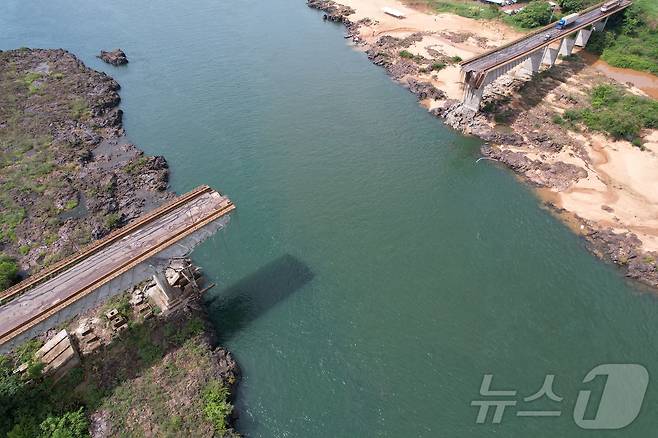 (아기아르노폴리스 로이터=뉴스1) 우동명 기자 = 24일(현지시간) 브라질 에스트레이토와 아기아르노폴리스를 연결하는 토칸팅스 강을 가로지르는 '주셀리누 쿠비체크 올리베이라' 다리가 싹둑 잘린 듯이 붕괴된 모습이 보인다. 2024.12.26