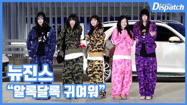 '뉴진스(NewJeans)'가 이른 아침 공항에 모인 팬들을 위해 깜짝 포즈를 준비했다.