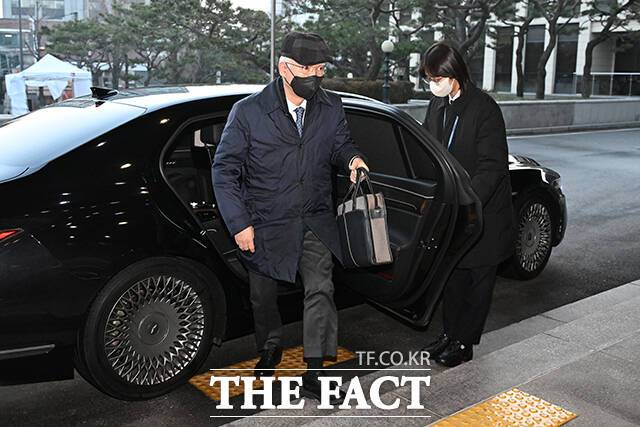 [더팩트ㅣ장윤석 기자] 정형식 헌법재판관이 한쪽 눈이 충혈된 채 26일 오전 서울 종로구 헌법재판소로 출근하고 있다.