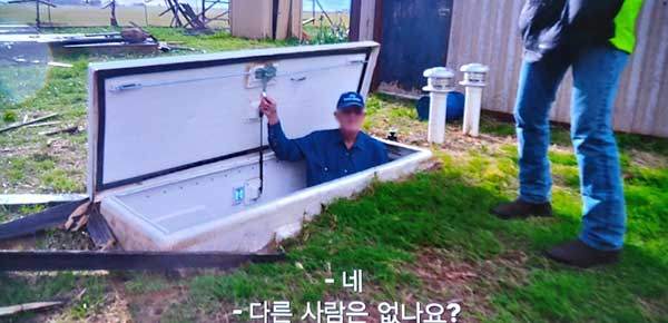 그러곤 토네이도로 건물 현관의 대형 유리창이 깨져 파편이 이리저리 튀는 CC-TV 화면과 건물 잔해에 깔려 휴대폰 영상 통화로 구조를 요청하는 실제 시민의 모습을 보여 준다.