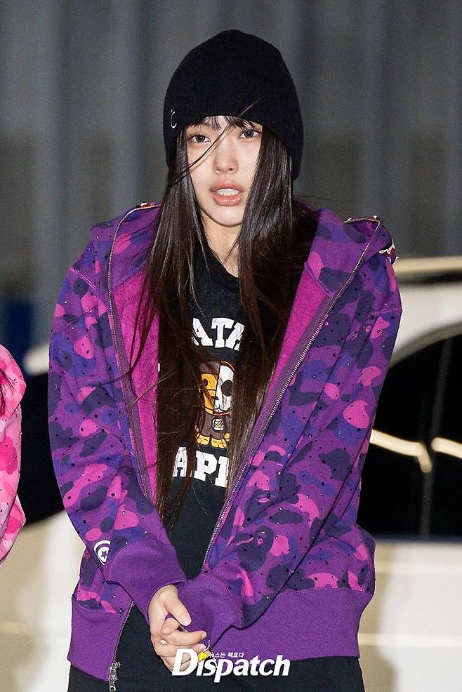 뉴진스는 컬러풀한 카모플라쥬 단체복으로 공항의 시선을 집중시켰다. 혜인은 매서운 바람에 몸을 움츠렸다.