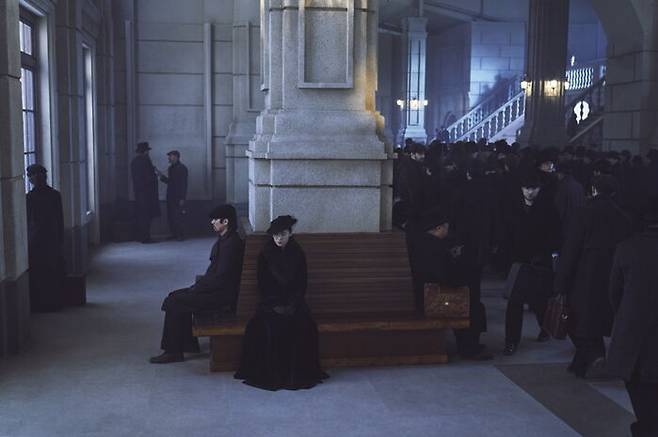 그러나 우민호 감독이 연출한 '하얼빈역 거사'에는 카타르시스가 없다. 부감(俯瞰: 높은 위치에서 피사체를 내려다보며 촬영하는 것)으로 찍어 현장의 분위기도, 안중근과 이토 히로무비의 얼굴도 담지 않았다. 위에서 아래를 내려다보는 시점 샷으로 찍은 이 장면은 '하얼빈역 거사'가 작은 소동처럼 보인다. 왜 그랬을까. 우민호 감독은 두 가지 이유를 들었다.