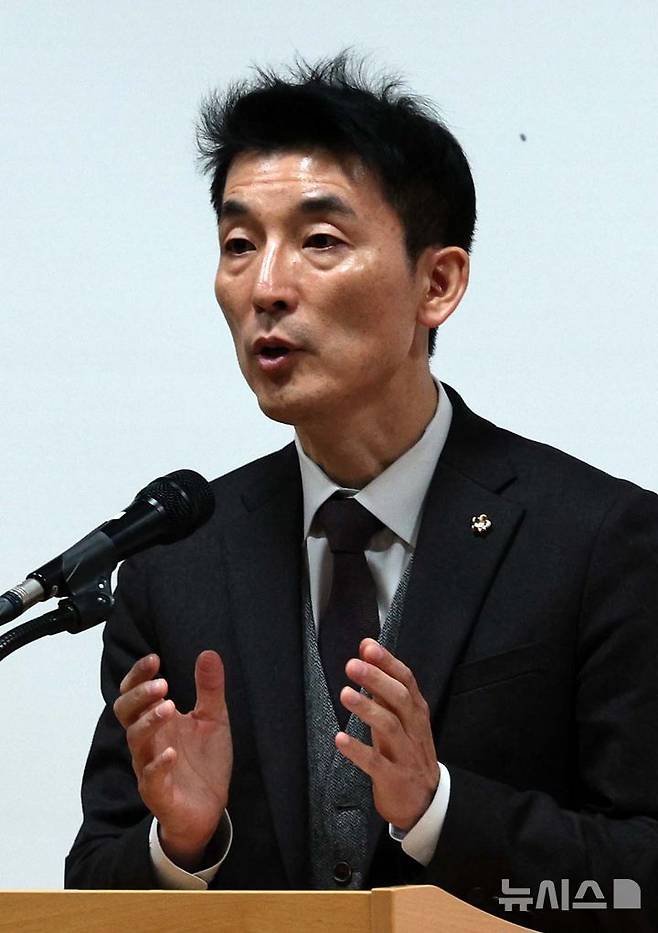 [서울=뉴시스] 고범준 기자 = 김용현 전 국방부 장관 변호인단인 이하상 변호사가 26일 서울 서초구 한국컨퍼런스센터에서 비상계엄 사태, 검찰 수사와 관련 김 전 장관의 입장 발표 기자회견을 하고 있다. 2024.12.26. bjko@newsis.com