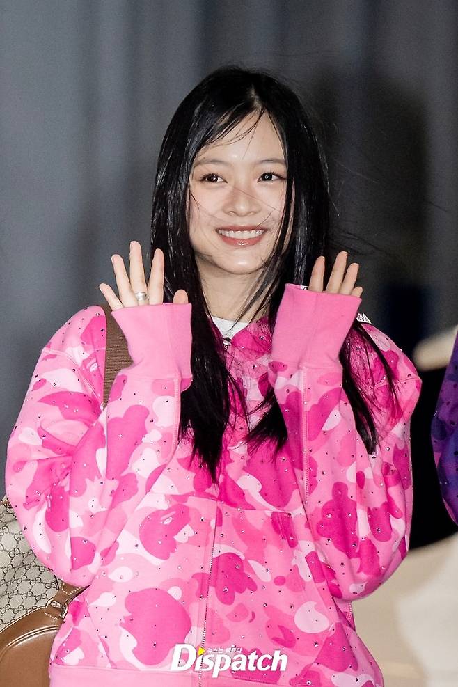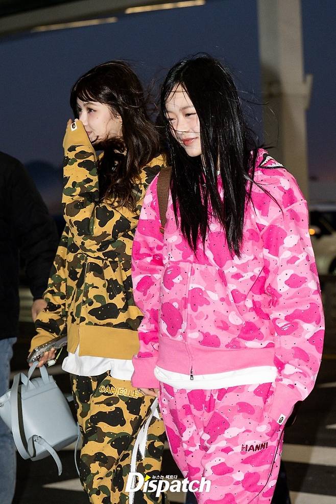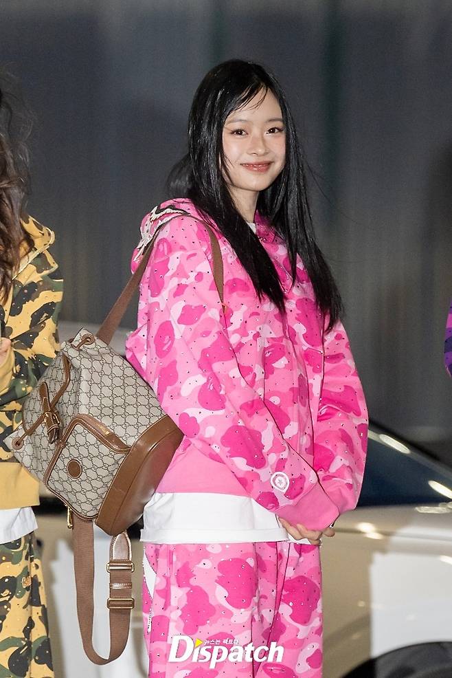 뉴진스는 컬러풀한 카모플라쥬 단체복으로 공항의 시선을 집중시켰다. 하니는 사랑스러운 미소로 시선을 사로잡았다.
