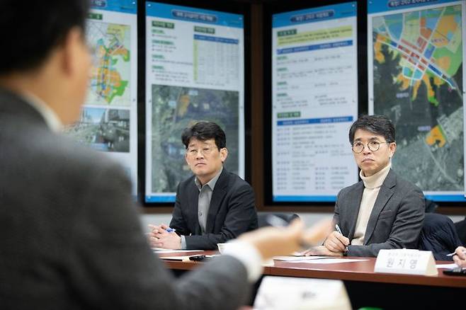 [서울=뉴시스] 김완섭 환경부 장관이 26일 경기 성남시 LH위례사업본부에서 열린 야외근로자 기후 위기 적응 대책을 위한 간담회에 참석해 의견 청취를 하고 있다. (사진=환경부 제공) 2024.12.26. photo@newsis.com *재판매 및 DB 금지