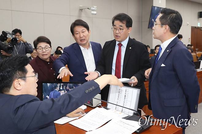 | ▲ 김건희 여사 동행명령장 발부 막아선 국민의힘 지난 11월 1일, 박찬대 국회 운영위원장이 국회에서 열린 운영위원회의 대통령비서실, 국가안보실, 대통령경호처에 대한 국정감사에서 불출석한 증인 김건희 여사 등에 대한 동행명령장을 발부하려하자, 국민의힘 배준영 간사와 권영진, 임이자 의원이 항의하고 있다. 맨 오른쪽은 더불어민주당 박성준 간사. |