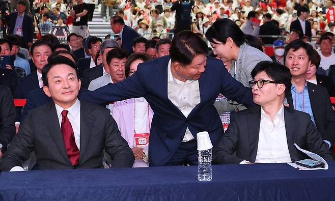 | ▲ 지난 7월 12일, 당시 국민의힘 대표 한동훈 후보와 권영진 의원이 제4차 전당대회 대구ㆍ경북 합동연설회에서 만났던 당시 모습. |
