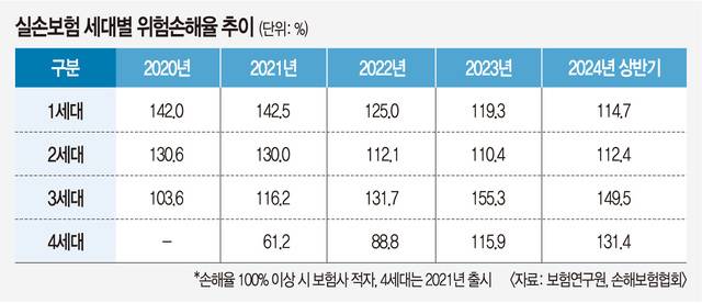 보험업계에 따르면 현재 1~4세대 실손보험의 손해율은 모두 100%를 웃돈다. 이는 보험사의 적자를 의미한다. 지난 2021년 7월 출시된 4세대 실손보험도 올해 상반기 기준 손해율 131.4%를 기록했다. 3세대 실손보험 손해율은 같은 기간 149.5%에 달했다. 보험사 입장에서 팔면 팔수록 손해다.