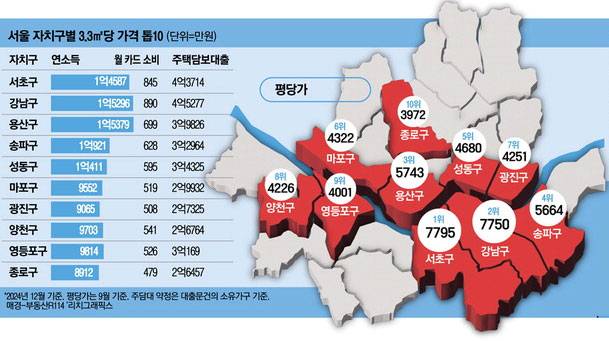 매일경제신문은 26일 부동산R114 연구팀과 서울 25개 자치구·467개 법정동의 아파트값과 거주가구별 소득·소비, 소유가구의 부채 상황을 전수조사해 분석했다.