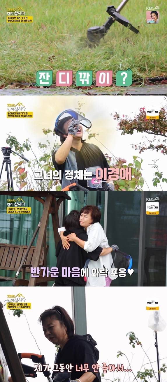 이경애는 잔디를 깎으면서 깜짝 등장했고, 박원숙과 혜은이는 그녀를 와락 껴안으며 맞았다.