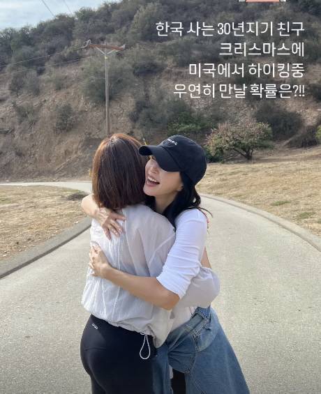 26일 한예슬은 "한국 사는 30년 지기 친구 크리스마스에 미국에서 하이킹 중 우연히 만날 확률은?!"이라며 사진을 올렸다.
