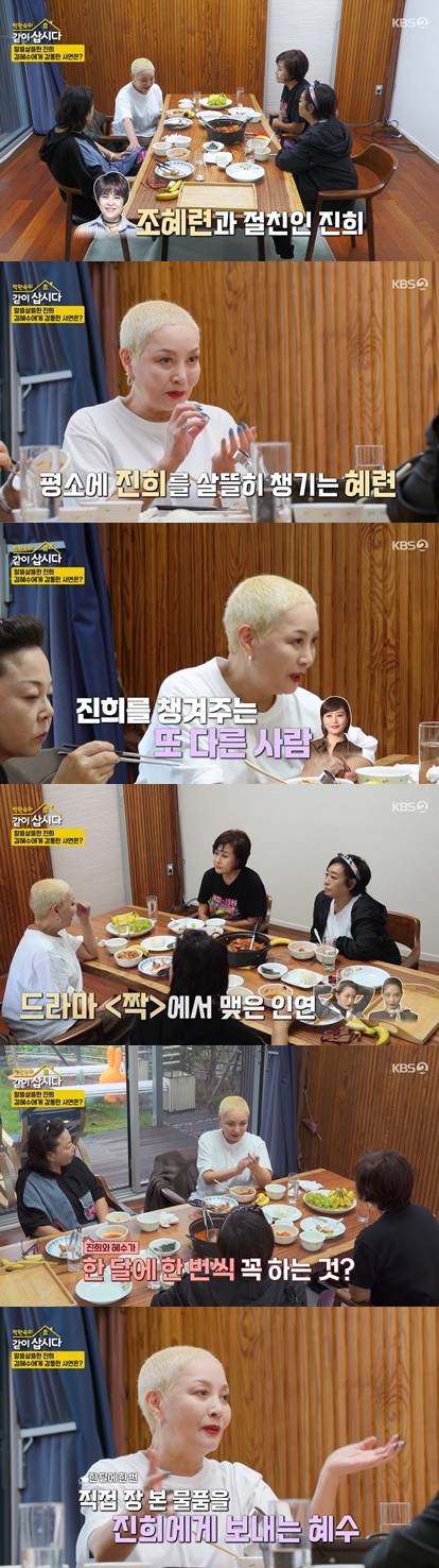 홍진희는 "한 3년 됐는데, 혜수가 한 달에 한 번 장을 봐서 나한테 음식을 보내준다"라며, 미안한 마음에 "혜수야 이런 거 하지 마라. 너 바쁘지 않냐"라고 연락도 했었다고.