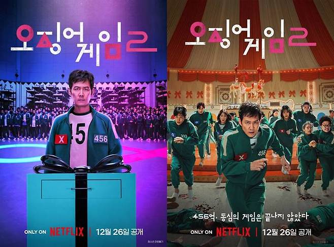 26일 오후 5시 넷플릭스(Netflix) 시리즈 '오징어 게임' 시즌2가 공개됐다. 복수를 다짐하고 다시 돌아와 게임에 참가하는 ‘기훈’(이정재)과 그를 맞이하는 ‘프론트맨’(이병헌)의 치열한 대결, 그리고 다시 시작되는 진짜 게임을 담은 이야기 '오징어 게임' 시즌2.