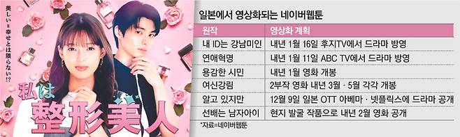 내년 1월 11일에는 일본 간사이 지역 방송 ABC TV가 네이버웹툰 ‘연애혁명’을 원작으로 한 드라마를 방송하고, 같은 달에는 ‘용감한 시민’을 기반으로 한 영화가 현지에서 개봉한다.