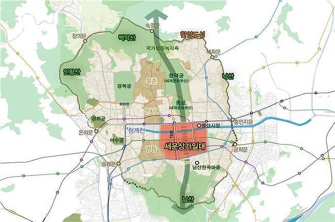 [세운상가 일대 도시재생활성화지역 위치도 (서울시 제공=연합뉴스)]