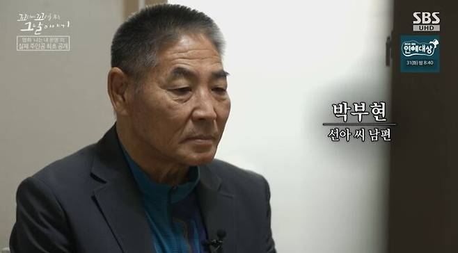 그런데, 세상의 이런 분위기와 정반대로, 선아 씨의 뉴스가 반가운 사람이 있어. 바로, 선아 씨의 남편 박부현 씨. 선아 씨를 찾았다는 소식은 남편에게도 전달됐어. 이 분이 황정민이 연기했던 영화 '너는 내 운명'의 실제 주인공이야.