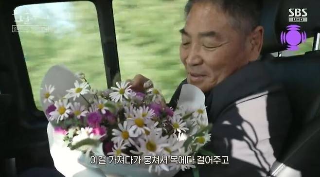 "산에 올라가면 들국화가 있잖아요. 들국화를 모자같이 만들어서 탁 끼워주고…"