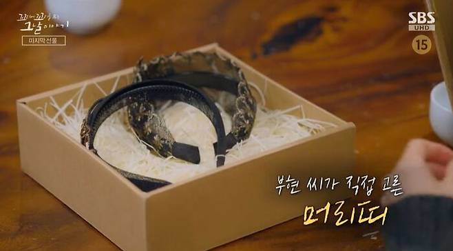 아내가 세상을 떠난 지 어느덧 15년이 지났어. 이젠 너무 늙어버려서 아내가 내 모습을 알아볼 수 있을까 걱정도 돼. 그동안 못 해준 게 많아서 후회도 돼. 그래서 부현 씨는 아내한테, 생전에 제대로 챙겨주지 못했던 선물을 하나 해주고 싶으시대. 이젠 직접 전할 수 없는 선물, 부현 씨가 직접 고른 머리띠야.