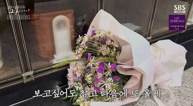 부현 씨가 들국화 꽃다발을 안고, 아내가 잠든 곳을 찾았어.