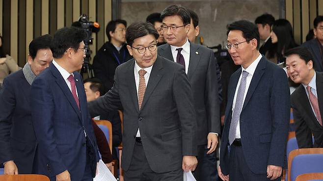 ▲ 국민의힘 권성동 대표 권한대행 겸 원내대표가 27일 오전 서울 여의도 국회에서 열린 비상의원총회에 참석하고 있다.
