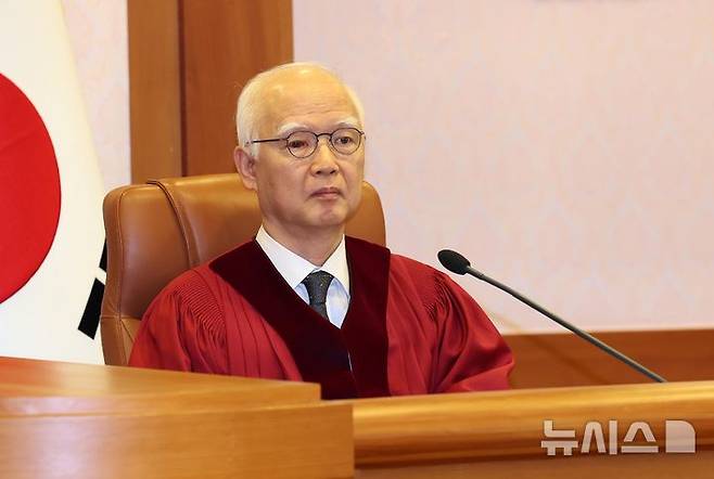 [서울=뉴시스] 고범준 기자 = 정형식 헌법재판관이 27일 서울 종로구 헌법재판소 소심판정에서 윤석열 대통령 탄핵 심판 첫 변론준비기일을 진행하고 있다. (공동취재) 2024.12.27. photo@newsis.com