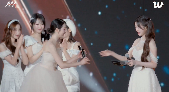 이날 장다아는 티빙 오리지널 시리즈 '피라미드 게임'을 통해 'AAA 2024' 신인상을 거머쥐었다. 시상에는 MC이자 친동생인 장원영이 직접 나서 눈길을 끌었지만, 한 컷에 담긴 두 사람의 모습을 볼 틈도 없이 상을 건넨 채 곧바로 돌아서는 모습을 보여 웃음을 안기기도 했다.