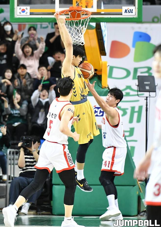 김보배(21, 202cm)가 짜릿한 프로 데뷔 첫 덩크슛을 성공시켰다.