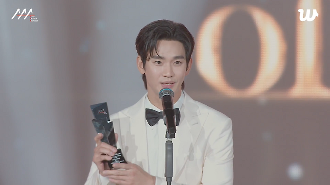 '눈물의 여왕'으로 활약했던 배우 김수현이 'AAA 2024'에서 대상을 받아들었다.