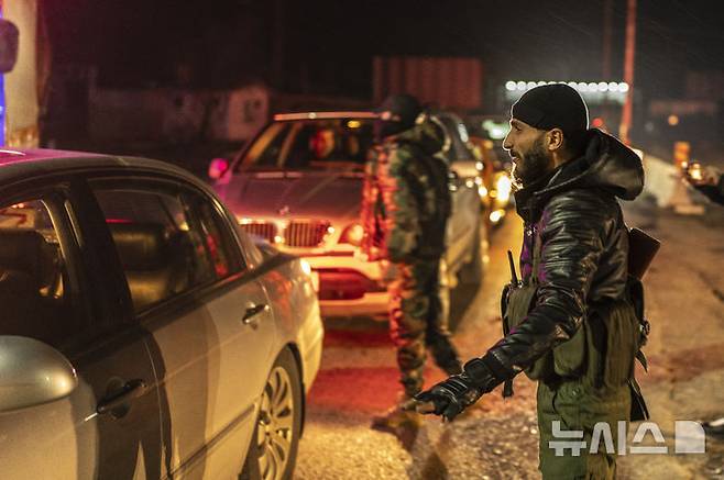 [시리아=AP/뉴시스] 바샤르 아사드 정권을 전복하고 새로운 시리아 정규군에 재편된 전직 반군 출신 전투원들이 27일(현지시각) 시리아와 레바논 국경 검문소에서 차량을 검문하고 있다. 2024.12.28.