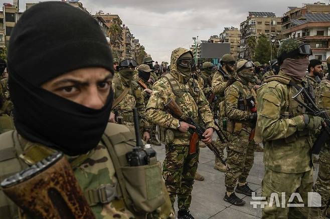 [다마스쿠스=AP/뉴시스] 바샤르 아사드 정권을 전복하고 새로운 시리아 정규군에 재편된 전직 반군 출신 전투원들이 27일(현지시각) 다마스쿠스 도심에서 열리는 군사 퍼레이드를 준비하며 대형을 갖추고 있다. 2024.12.28.