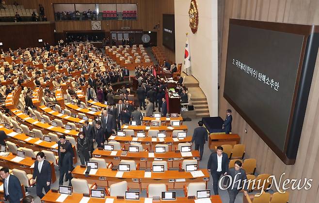 권성동 국민의힘 원내대표는 이날 본회의가 시작하기 전, 원내대책회의에서 탄핵 소추안에 반대한다며 "권한대행에 대한 탄핵은 민생 탄핵이며 외교 탄핵"이라고 외쳤다. 하지만 정작 국민의힘 의원들은 탄핵 소추안이 가결되자 민생법안이 산적한 본회의장을 미련 없이 떠나버렸다.