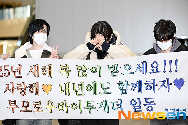 투모로우바이투게더(TOMORROW X TOGETHER) 멤버 연준, 범규, 태현, 휴닝카이가 12월 28일 오후 서울 강서구 방화동 김포국제공항 국제선을 통해 해외 일정 참석 차 일본으로 출국하고 있다.