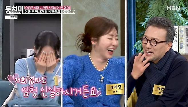 그런 가운데 김예령은 "제가 어쩌다 보니 결혼을 두 번 했다"라며 시집살이에 대해 말하려 했다. 이에 박현준이 "많이 했네, 많이 했어"라고 하자 곽정희는 "난 한 번 했어"라고 틈새 어필을 하기도. 박현준은 이혼 후 목사가 됐다고 밝혔고, 이를 들은 김수현은 "저희 엄마랑 맞다. 엄마가 엄청 신실하다"라고 했다. 이에 박수홍은 "엄마를 자꾸 떠넘기려고 하네"라며 웃었다.