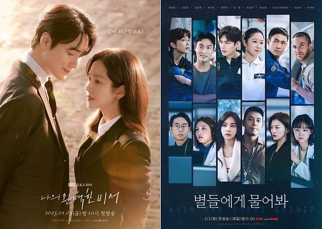 가장 먼저 방영되는 드라마는 SBS '나의 완벽한 비서'다. 배우 한지민과 이준혁이 주연으로 나서는 이 드라마는 잘 나가는 회사의 CEO지만 일 말고는 할 줄 아는 게 없는 강지윤(한지민)에게 '완벽'한 비서인 유은호(이준혁)가 나타나면서 스토리가 전개되는 성장 로맨스다. '나의 완벽한 비서'는 오는 25년 1월 3일 첫 방송된다.