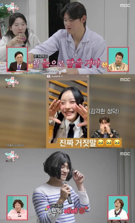 이후 실제로 뉴진스의 하니가 샤라웃한 영상을 공개하며 '성덕'을 인증한 김도영. 팜하니로 변장한 그의 충격적 비주얼에 누나들은 경악하는 것도 잠시, 스타일링을 비롯해 눈썹 정리를 해주는 등 동생을 적극 지원했다.