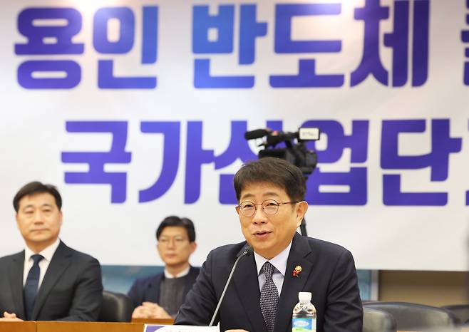 | ▲ 지난 26일 오전 경기도 용인시 삼성전자 기흥캠퍼스에서 열린 '용인 반도체 국가산업단지 지정' 행사에서 박상우 국토교통부 장관이 발언하고 있다. |