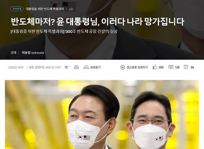 손을 대는 것마다 문제를 일으키는 대통령이 우리나라의 핵심 산업인 반도체까지 망치는 건 반도체 산업 종사자로서 그냥 두고 볼 수 없다는 생각에 시작한 것이 <대통령을 위한 반도체 특별과외> 연재였습니다.