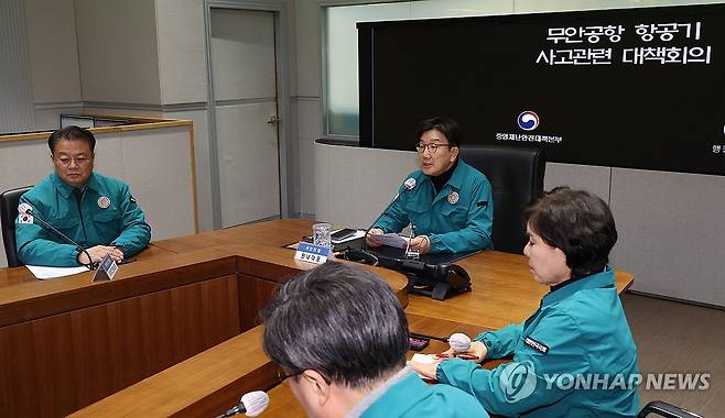 (서울=연합뉴스) 한상균 기자 = 국민의힘 권성동 대표 권한대행 겸 원내대표가 29일 정부서울청사 중앙재난안전대책본부에서 무안 제주항공 여객기 사고 관련 대책회의를 하고 있다. 왼쪽은 방기선 국무조정실장. 2024.12.29
