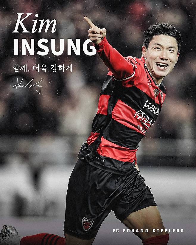 포항은 29일 공식 채널을 통해 "그라운드를 누비는 스피드 레이서 김인성과 재계약을 체결했다. 2025시즌에도 동행을 이어간다"라고 공식 발표했다.