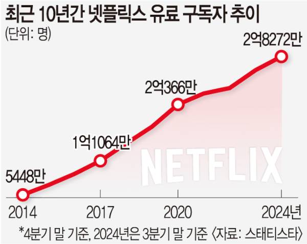 가입자가 늘어날수록 성장세가 더뎌지는 OTT 업계의 시장 특성도 한계로 꼽힌다. 시장조사업체 스태티스타가 공개한 넷플릭스의 전 세계 유료 구독자 추이를 보면, 2014년에서 2019년까지 300% 이상의 폭발적인 성장세가 관측됐지만 2019년부터 2024년까지의 가입자 증감률은 69%에 불과하다. 이 때문에 넷플릭스는 콘텐츠 외적으로 광고 요금제 신설, 가족 계정 공유 차단 등 강수를 두는 상황이다.