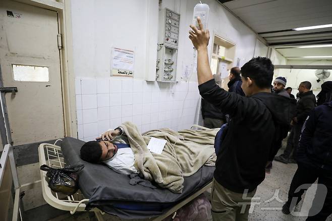 (가자시티 로이터=뉴스1) 김지완 기자 = 28일(현지시간) 가자지구 북부의 카말 아드완 병원에서 대피한 부상당한 주민들이 알 아흘리 알 아라비 병원에 몰려들고 있다. 2024.12.28