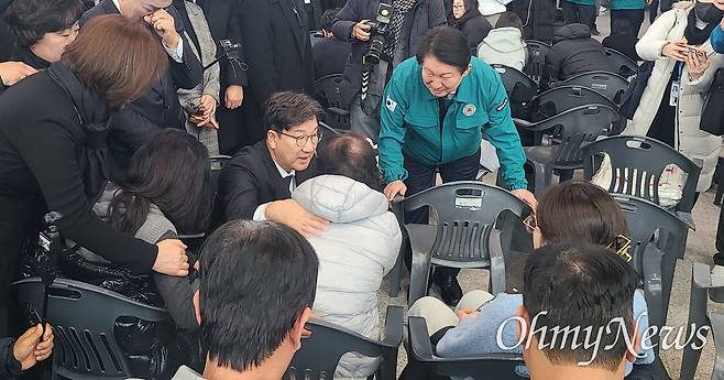 | ▲ 30일 오전 권성동 국민의힘 대표 권행대행 겸 원내대표가 전날 제주항공 여객기 사고가 발생한 전남 무안국제공항을 찾아 유가족을 위로하고 있다. |