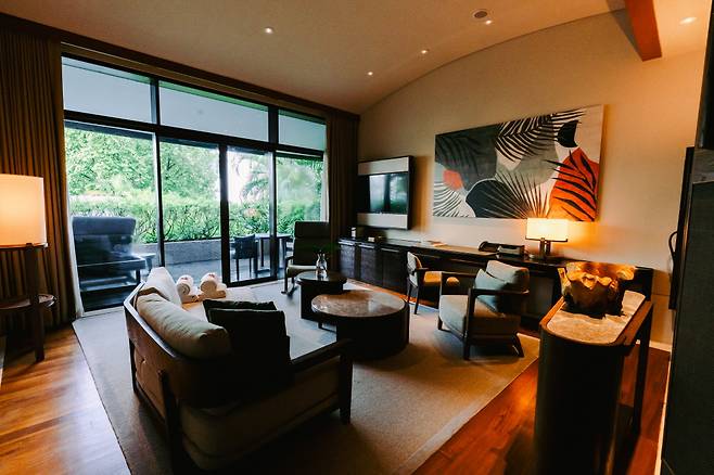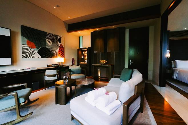 호텔 객실이라기보단 모 기업 회장님의 고급 별장 한 채라고 해도 무방할 정도의 크기와 럭셔리함이다. 각 침실엔 킹사이즈 침대가 있어 최대 성인 6명과 어린이 1명까지 숙박할 수 있다. 야외 테라스와 전용 풀은 물론, 거실 공간과 취사 가능한 부엌까지 갖췄다. 은은한 패턴의 벽지와 따뜻한 조도의 조명 등 세심한 터치도 엿보인다.