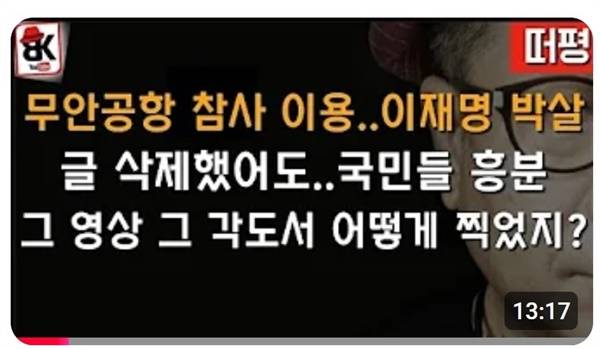 | ▲ 성 대변인뿐만 아니다. 현재 부정선거를 주장하며 윤석열을 옹호하고 있는 구독자 94만 명의 유튜브 채널을 운영하는 이봉규씨 또한 29일 "무안공항 참사 이용하려다 이재명과 민주당 박살! 의문점도..."라는 제목의 영상을 올렸다. |