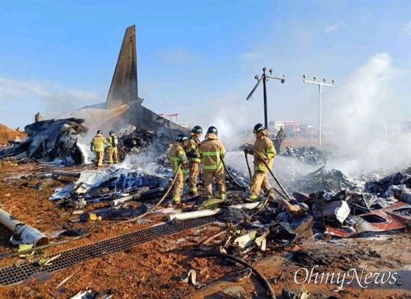 | ▲ 29일 오전 전남 무안국제공항에서 소방당국이 제주항공 여객기 사고를 수습하고 있다. 2024. 12. 29 |
