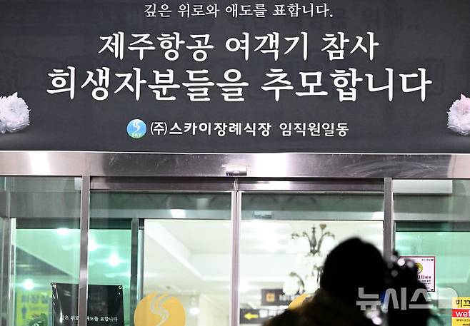 장례식장에 붙은 제주항공 여객기 참사 추모 현수막