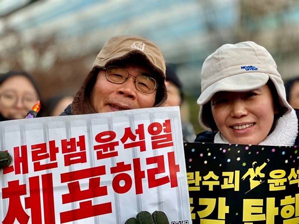 - '내란수괴' 체포영장에 모인 윤 지지자들... "밤새 대통령 지키자"