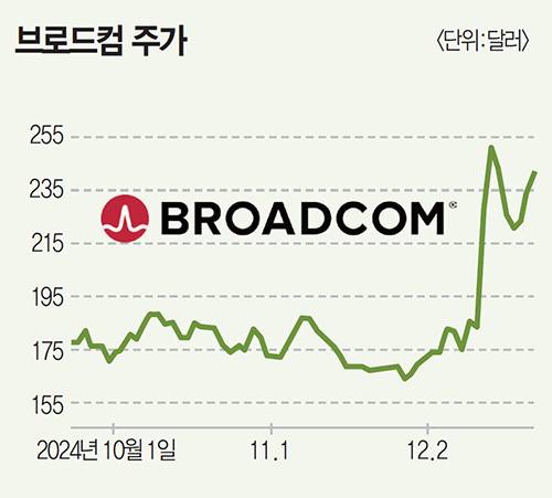 최근 월가 핫 키워드는 ‘ASIC(주문형 반도체)’다. 관련 산업 대장주로 꼽히는 브로드컴과 마벨테크놀로지 주가만 봐도 알 수 있다. 2024년 12월 24일 브로드컴 종가는 239.9달러. 한 달 전인 11월 25일 164.8달러와 비교하면 45.5% 올랐다. 마벨테크놀로지도 비슷하다. 11월 25일 92.2달러 수준이던 주가는 12월 24일 기준 115.9달러를 기록했다. 25.7% 상승이다. 문준호 삼성증권 애널리스트는 “시장 관심은 이미 ASIC 밸류체인으로 서서히 옮겨 가고 있다”며 “ASIC 부문 대장주인 브로드컴과 투자 포인트가 겹치는 마벨테크놀로지에 주목할 필요가 있다”고 밝혔다.